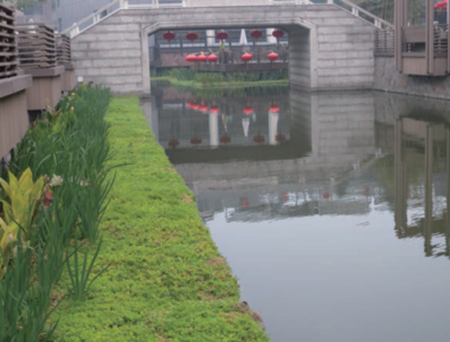 復(fù)合纖維浮動(dòng)濕地與高效氣溶技術(shù)集成的生態(tài)曝氣氧化池應(yīng)用大大提升了單位水體容量的污染物削減能力,應(yīng)用于污水處理廠退水的升級(jí)改造,通過(guò)合理配置,結(jié)合人工濕地等工藝,在減少土地用量的同時(shí),能夠?qū)⒊R?guī)排水提升到地表IV類水標(biāo)準(zhǔn)。